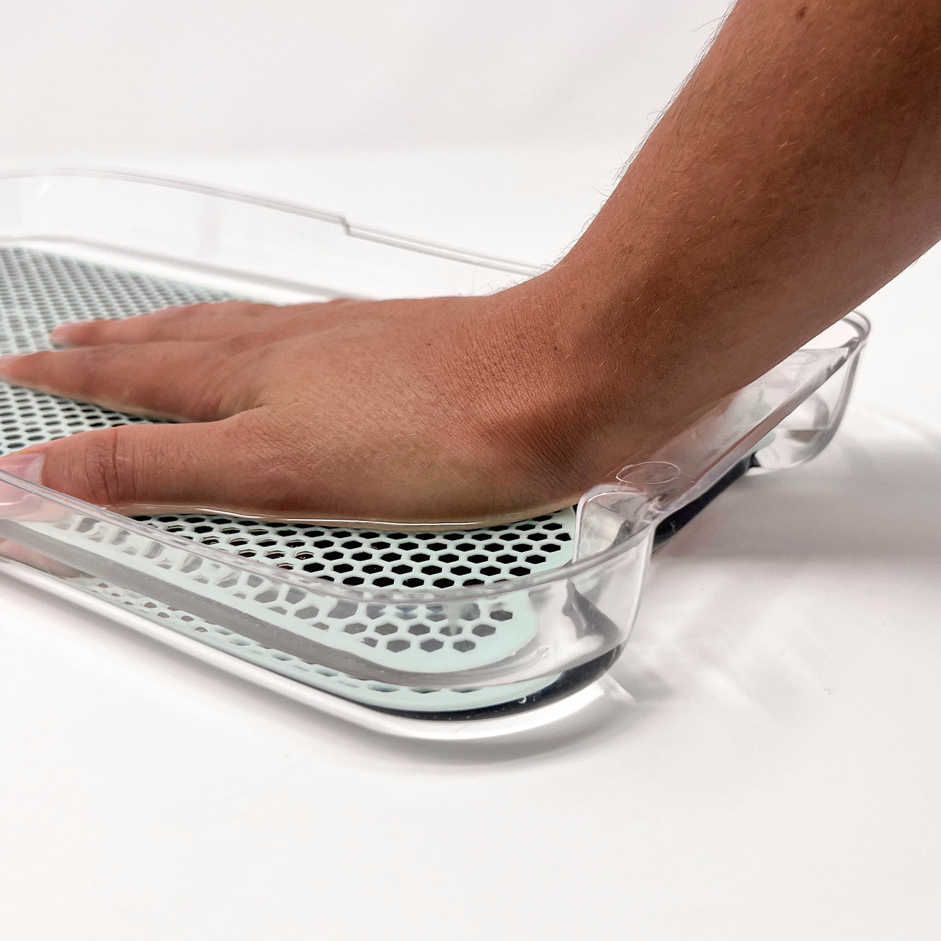 מגשים עם תמיכה לפרק כף היד וספוגים רכים הניתנים לשימוש דו־צדדי.